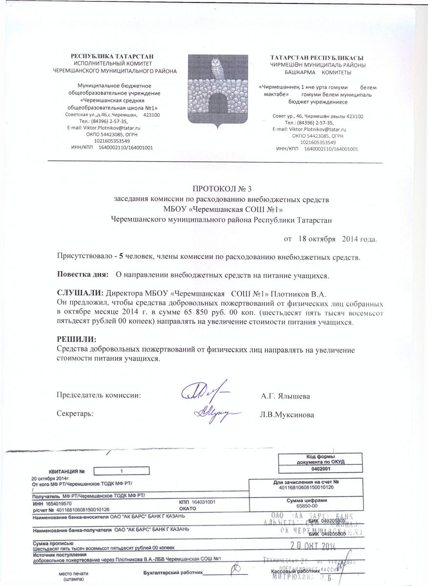 - Протоколы заседания комиссии по расходованию внебюджетных средств 2014 год.Протокол №1, Протокол №2, Протокол № 3, Протокол № 4,Протокол №5