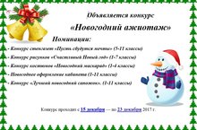 Администрация школы, в предверии Новогодних праздников объявляет конкурс.