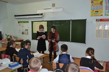 Учащиеся 8 класса выступили перед учениками 4 класса. Они рассказали о земляке Семёне Архиповиче Ларионове (1915—1984) —Герое Советского Союза (1943),чьё имя носит наша школа.