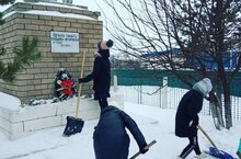 Ученики 8 класса очистили памятник от снега.
