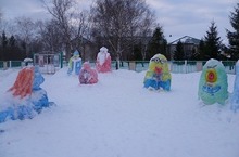 Учениками школы был вылеплен из снега снежный город. Это лошадь - символ года.