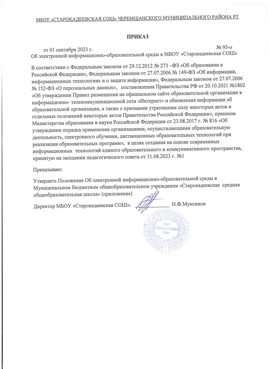 Муниципальное бюджетное общеобразовательное учреждение «Старокадеевская средняя общеобразовательная школа» Черемшанского муниципального района Республики Татарстан