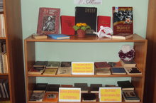 По этому случаю в школьной библиотеке проходит выставка книг посвященных к Дню Победы в Великой Отечественной Войне .