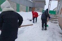 Волонтеры школьного волонтёрского отряда «Радуга Добра» под руководством классных руководителей вышли на уборку снега во дворах частных домов, где проживают пожилые одинокие люди. Вооружившись лопатами, волонтеры успешно расчистили заваленные снегом дорожки на территории дома, освободив проход к подсобным строениям во дворе пожилых. А также помогли домашними делами по дому. Для пожилых, проживающих в частных домах, такая помощь неоценима.«Радуга Добра» мәктәп волонтерлар отряды волонтерлары класс җитәкчеләре белән үзләре шефлык иткән әбиләр янында булып, тирә-юньнәрен, ишегалларын кардан арындырды.