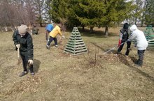 Мәктәп бакчасында язгы эшләр гөрли.