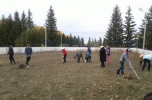 Учителя и учащиеся школы высадились экологическим десантом и на хоккейный корт села. Участники акции очистили корт и близлежащую территорию от мусора, сухой травы и сорняков.