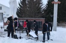 Учащиеся МБОУ "Туйметкинская ООШ" расчистили от снега территорию у памятника Неизвестному Солдату.Молодцы,ребята!