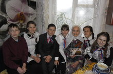 Бөек Җиңүнең 70 еллыгын каршылап... 8 нче сыйныфлар Факия әбине бәйрәмгә чакырдылар. 29.04.2015