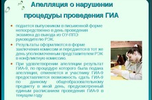 В соответствие с пунктами 15 и 22 Порядка проведения ГИА-9, в целях содействия проведению ГИА образовательные организации, а также органы местного самоуправления, осуществляющие управление в сфере образования, под роспись информируют обучающихся 9 классов и их родителей (законных представителей) о порядке подачи апелляций о нарушении установленного порядка проведения ГИА и о несогласии с выставленными баллами, о времени и месте ознакомления с результатами ГИА, а также о результатах ГИА, полученных обучающимися, до 20 апреля текущего года.