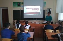 Бүген Туймәт төп белем мәктәбендә 5 - 6 нчы класслар өчен "Ленинград блокадасын өзүгә 76 ел" темасы астында ачык сыйныф сәгате үтте.