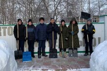 Отчистка памятника павшим воинам ВОВ от снега. 29.01.2022