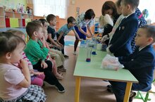 15 апреля 2024 г. по взаимодействию "Точки Роста" ученики 1 и 3 классов МБОУ "Ульяновская СОШ" совместно с дошкольной группой МБДОУ "Ульяновский детский сад "Звездочка" провели несколько экспериментов, используя научный набор. Обучающиеся начальных классов рассказали дошколятам о технике безопасности с химическими реактивами, а также показали взаимодействие химических препаратов, при этом получились очень увлекательные и интересные эксперименты. Таким образом, все увидели "Химический светофор", научились создавать полимерных червяков и "Кристаллические скульптуры".