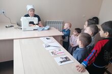 С дошкольниками педагог провела беседу на тему "Блокадный хлеб". Она на картинках показала и в доступной для детей форме рассказала о блокаде Ленинграда во время войны. Педагог призвала детей ценить хлеб, очень трепетно и с уважением относиться к хлебу: не крошить, не бросать на пол. Блокада Ленинграда длилась с 8 сентября 1941 г. по 27 января 1944 г.