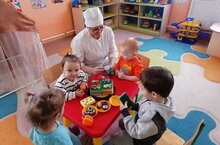 В рамках ранней профориентации дошкольников, с целью расширения о труде повара воспитанники детского сада встретились с поваром Натальей Николаевной. Она подробно рассказала о своей работе. Дети недавно побывали в пищеблоке, поэтому им уже известно, какие кухонные предметы, машины и посуда используется для приготовления пищи, как обрабатываются продукты. После беседы ребята сами стали поварами и решили показать, как умеют накрывать стол для гостей – игрушек. Также «угостили» повара своими блюдами. Очень насыщенным и интересным прошла сегодняшняя встреча дошколят с поваром.