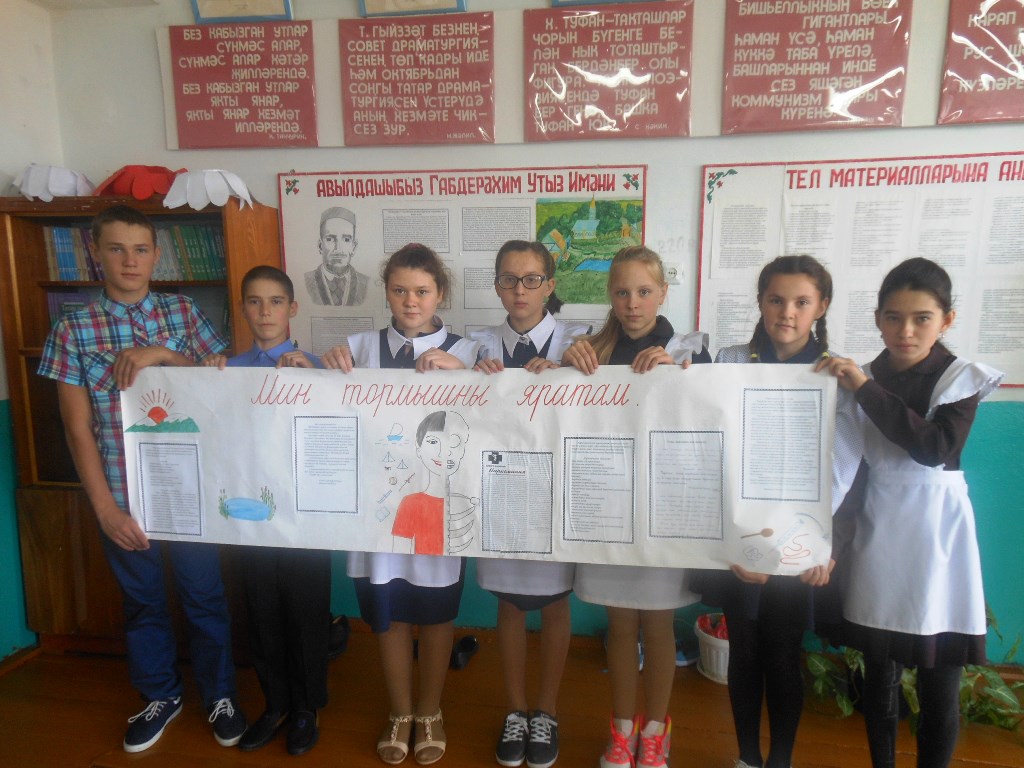 Опубликовано: 10.09.20165 нче сентябрьдән 11 нче сентябрьгә кадәр республика күләмендә сәламәт яшәү рәвешен пропагандалау акциясе бара. Утыз Имән мәктәбе укучылары да бу акциягә теләктәшлек белдерделәр. Бу атнада мәктәп күләмендә “Без сәламәт яшәү рәвеше яклы” мероприятияләре үткәрелде. Укучыларга “Сәламәт Россия” дигән видеоролик күрсәтелде, китаплар күргәзмәсе оештырылды. 5-6 сыйныф укучылары музейда спортчы авылдашыбыз Фаик Исхаков стенды белән таныштылар. Шулай ук сәламәт яшәү рәвешенә багышланган стенгазета чыгарылды.