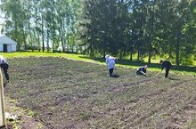 Все с радостью приводили в порядок школьную территорию: собирали мусор, копали и формировали грядки, сажали лук и морковь. -
