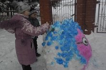 Яңа ел мәйданчыгын бизәүдә башлангыч сыйныф укучылары да читтә калмады. Алар кардан әкият геройлары, таучык ясап, буяп куйдылар, бакчада үскән чыршылрга да уенчыклар ясап элделәр.