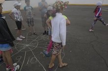 Бүген лагерьның 11 нче көне. Укучылар белән стадионда асфальтта рәсем ясау конкурсы оештырдык. Балалар ярышта актив катнаштылар, һәрберсе призлар алдылар.