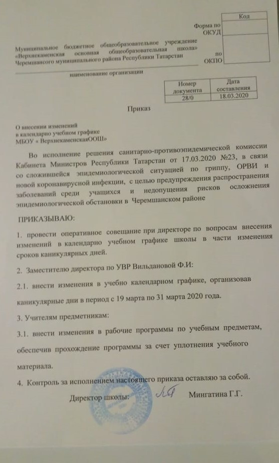 Муниципальное бюджетное общеобразовательное учреждение «Верхнекаменская основная общеобразовательная школа» Черемшанского муниципального района Республики Татарстан