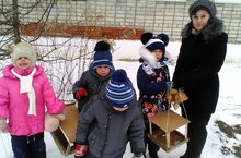 24 января дети Верхнекармальского детского сада «Ручеек» на прогулке вешали на деревья кормушки.