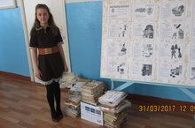 Среди учащихся 2-9 классов по сбору макулатуры лидирует Митякина Дарья ученица 5 класса. Она за неделю собрала 74 кг макулатуры.