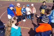 "Язгы игелек атнасы" акциясе кысаларында һәм 9 Май бәйрәме алдыннан юнармейчылар отряды Бөек Ватан сугышында һәлак булганнарга һәйкәл территориясен җыештыруда катнаша.