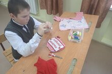 1 а сыйныф укучылары авыл китапханәсендә мастер-класста булдылар һәм үз әниләре өчен 3D открытка әзерләделәр.