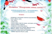 Берегите птиц! Кормите их зимой!Дәресләрдә тәрбияләнүчеләр безнең төбәктә кышлый торган Кышлаучы кошлар белән танышуларын дәвам иттеләр, аларның гадәтләре һәм гадәтләре, аларга нинди азык кирәклеге турында белделәр, салкын вакытта кошларны көн саен тукландыру кирәклеге турында сөйләштеләр.күп кенә кышлаучы кошларның язмышы күп очракта кешенең игелегенә, юмартлыгына һәм мәрхәмәтенә бәйле. Кошларны саклагыз! Аларны кышын ашатыгыз!