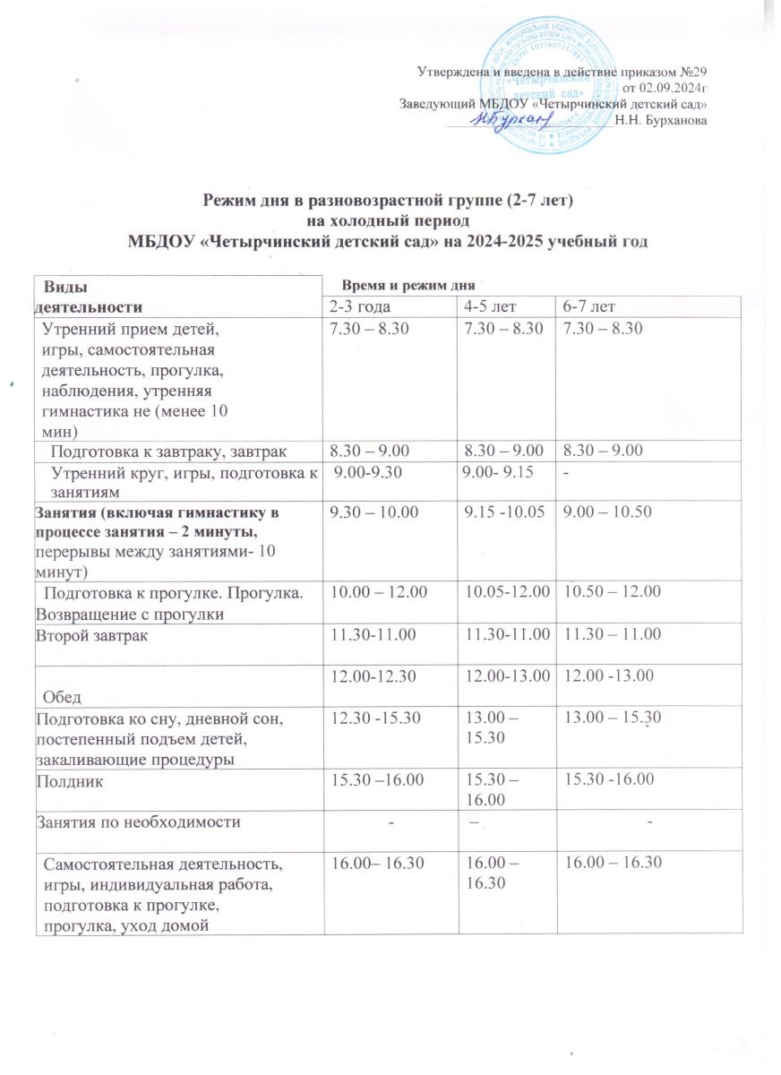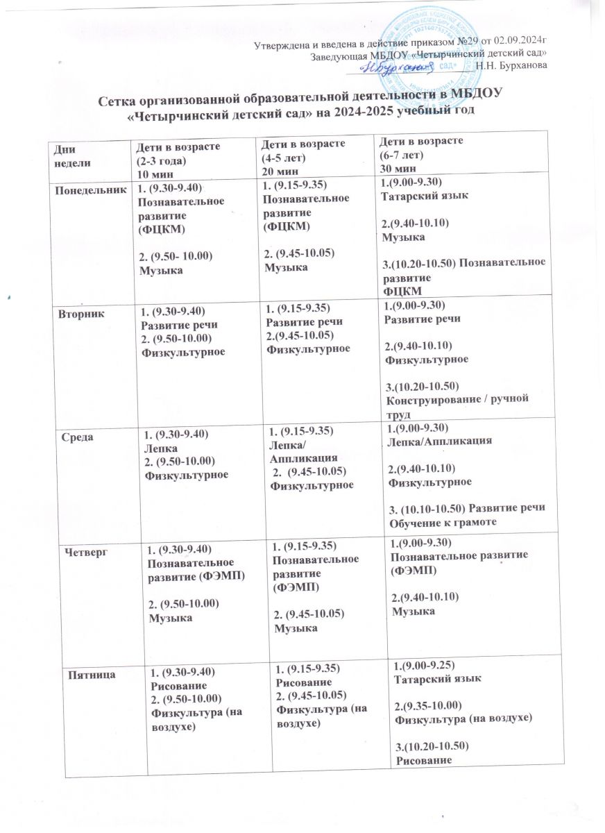 Сетка ООД в разновозрастной группе на 2024-2025 учебный год