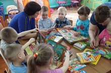 Совмесная работа сельской библиотеки и ДОУ. Детям были представлены разнообразные книги, которые можно не только читать, а еще и поиграть.