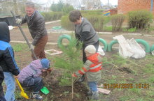 Озеление территории детского сада совместно с родителями и представителями из социальной защиты.