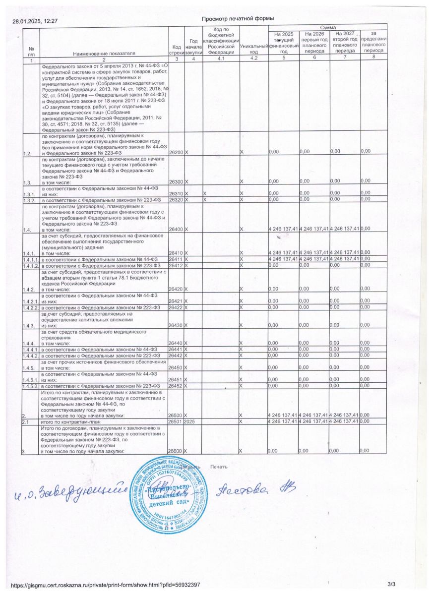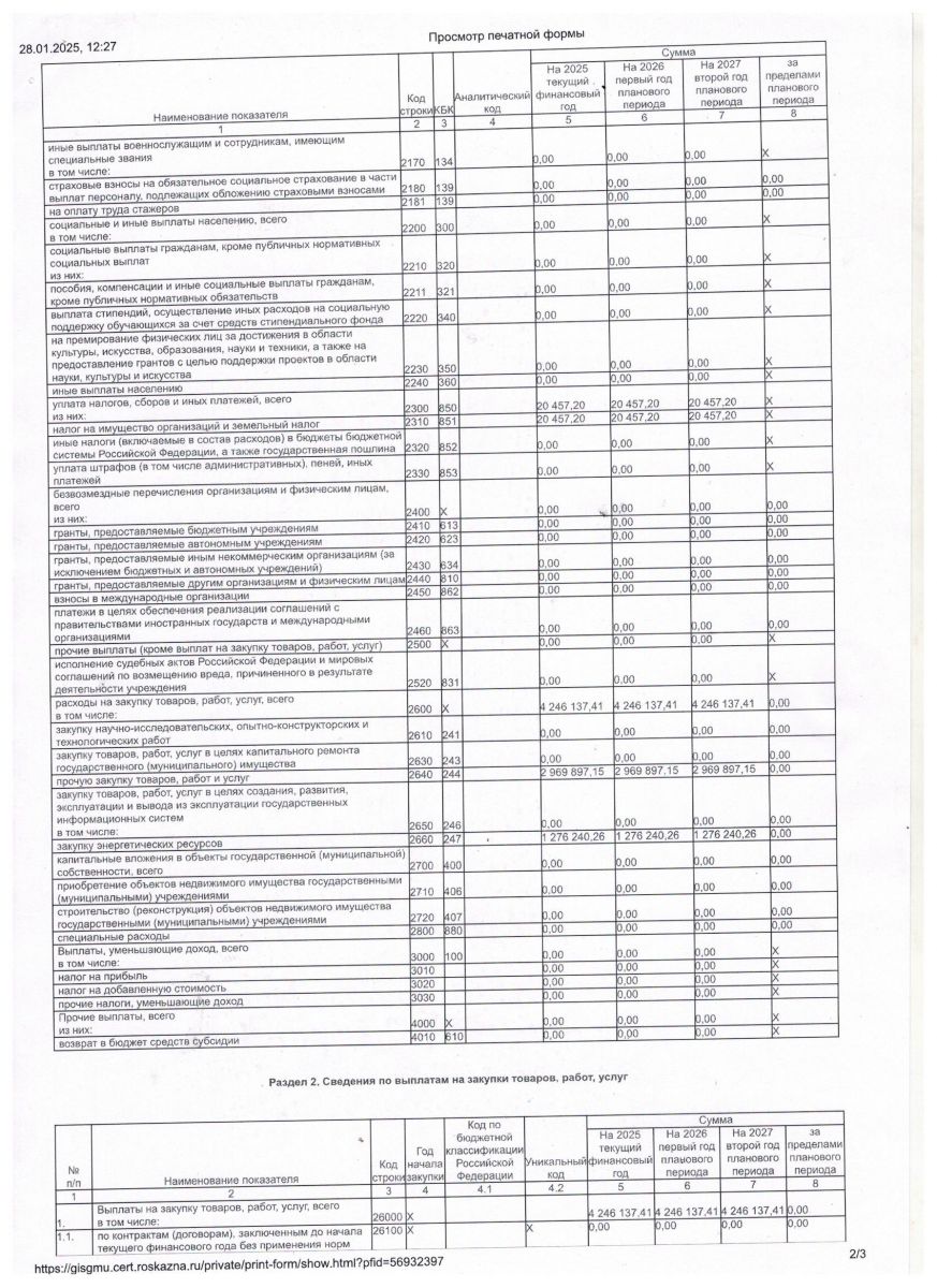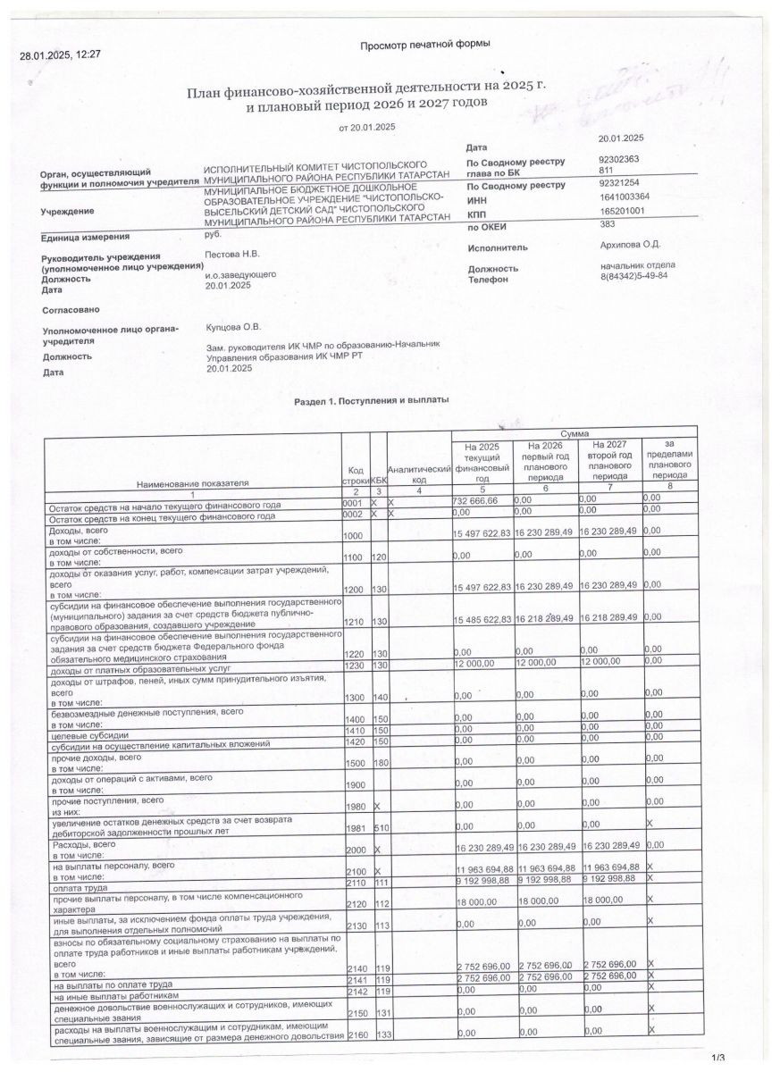 План финансово-хозяйственной деятельности на 2025 г. и плановый период 2026 и 2027 годов