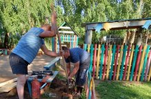 Помощь родителей в благоустройстве участка/ Участокны төзекләндерүдә ата-аналар ярдәме 16.07.2021