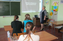 С целью воспитания гражданской активности, формирования правовой культуры в 11 классе прошел Парламентский урок- 2016 на тему "Выборы иизбирательное право в истории России"(ответственный учитель истории и обществознания Пищальникова Н.М.)