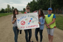 Ребята пришкольного лагеря труда и отдыха "Муравей" провели акцию «Меняем сигарету на конфету» на центральной площади с. Чистопольские Выселки (ответственный педагог-организатор Шахова Р.Р.)