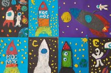 Космонавтика көнендә 2 нче сыйныф укучылары (сыйныф җитәкчесе Онюшкина Е.А.) пластилиннан могҗизалы картиналар ясадылар. Эшләр космос үзе кебек ачык һәм серле килеп чыкты