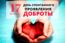 Ежегодно 17 февраля по всему миру отмечается День спонтанного проявления доброты, день, чтобы выражать человеколюбие и получать его взамен. Иногда самый маленький акт милосердия к ближнему, просто говоря, пожалуйста, или спасибо, может сделать жизнь намного лучше.
