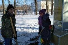 В рамках республиканкой акции «Весенняя неделя добра - эстафета добрых дел» учащиеся школы провели очистку от снега территорию памятника погибшим воинам-землякам.