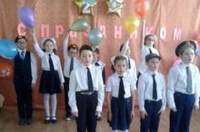 Ученики начальных классов спели патриотические песни, инсценировали смешные зарисовки из солдатской жизни."9 мая "- грустная песня, исполненная учащимися 1-4 классов.