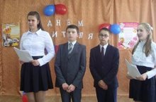 В День учителя в школе состоялся праздничный концерт, звучали поздравления, слова благодарности для своих любимых учителей. Заранее был украшен зал, оформлен стенд.