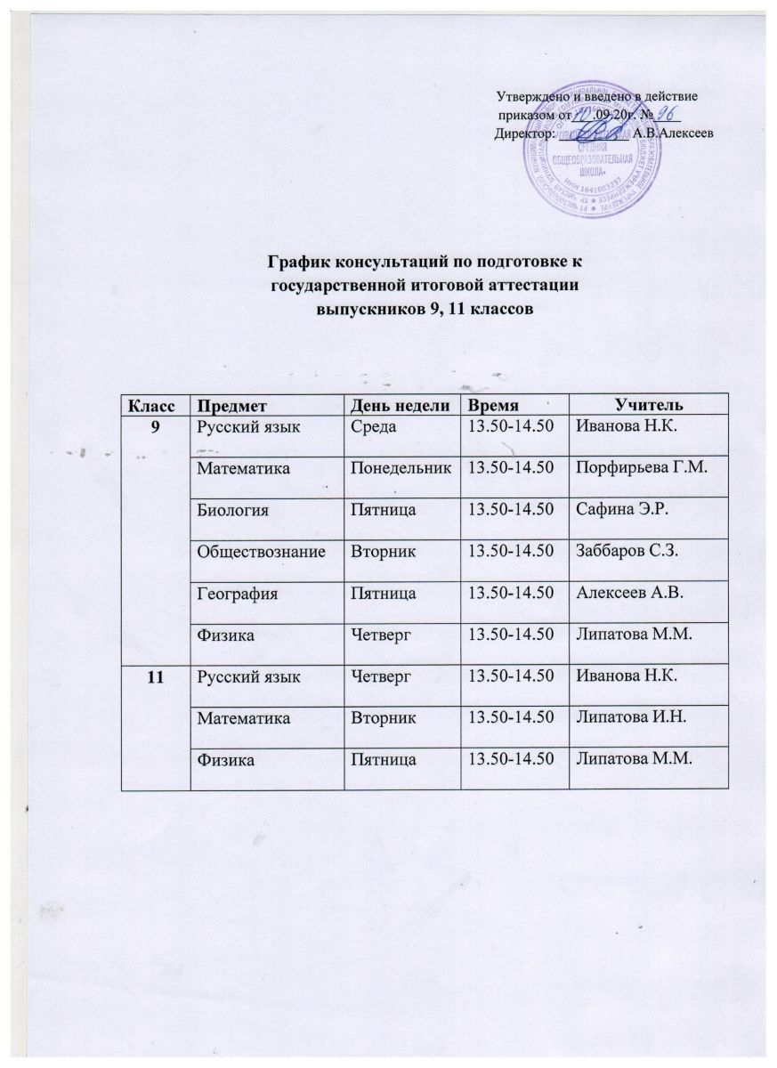 - График проведения онлайн- консультаций для подготовки к ЕГЭ