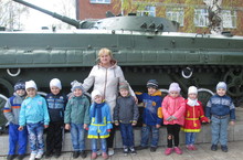 Экскурсия к военкомату "Военная техника российской армии", группа №8 "Солнышко". 08.05.2014 На постамент взобравшись высоко, Пусть как свидетель подтвердит по праву: Да, нам далась победа нелегко. Да, враг был храбр. Тем больше наша слава.