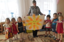 Акция "Один день с родителями" - аппликация "Солнышко из ладошек". 18.04.2014