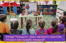 В ходе беседы педагоги рассказали детям об истории праздника, обсуждали, что добро всегда побеждает зло. Также, ребята, познакомились с государственными символами, народами, населяющими Россию.