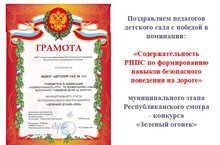 Заслуженную Почетную Грамоту победителей в номинации "Содержательность РППС по формированию навыков безопасного поведения детей на дороге" получили педагоги детского сада, приняв участие в муниципальном этапе Республиканского смотра - конкурса "Зеленый огонек". Это результат планомерной работы, главное в которой - это привить детям навыки безопасного поведения на дороге! 10.04.2020