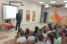 Бүген "Су объектларында куркынычсызлыкны һәм үз-үзеңне тоту кагыйдәләрен тәэмин итү, беренче табибка кадәр медицина ярдәме күрсәтү" темасына профилактик эш алып бару максатыннан, безнең балалар бакчасына кече үлчәмле суднолар буенча дәүләт инспекторы, Россия гадәттән тыш хәлләр министрлыгының Татарстан Республикасы буенча ГУ ГИМС үзәгенең Чистай бүлекчәсе җитәкчесе Марфин М. Г. килде.