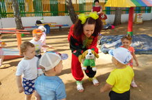 Бүген мәктәпкә әзерлек балалар төркемендә үткәрелгән күңел ачу кичәсендә кунакта "Күңелле клоуннар". Максат: җәйге күңелле атмосфера аша балаларда уңай эмоциональ хәләкәт булдыру.Клоун Клепа һәм аның дусты Тепа балалар белән төрле уеннар уйнадылар.