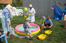 Сегодня в детском саду был проведен День Нептуна. Лето – хорошая возможность организовать праздник на воде: использовать надувной бассейн. А сделать его динамичным и познавательным помогли знакомые сказочные персонажи, любимые игры, песни и танцы и захватывающие конкурсы.