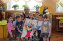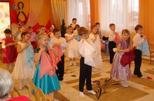 Нәниләр төркемендә Халыкара Хатын -кызлар көненә багышланган кичәдә, нәниләр әниләрен һәм әбиләрен җырлар, биюләр белән шатландырдылар.
