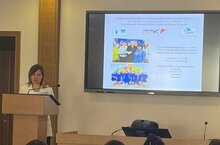 Старший воспитатель Сунгатуллина А.М. представила опыт организации обучения воспитанников татарскому языку с использованием развивающих игр В.В.Воскобовича «Сказочные лабиринты игры».Был представлен проект «В игры играем-татарский изучаем». Данный проект-система многофункциональных творческих пособий, с помощью которых обучение детей второму языку происходит легко, весело и непринуждённо, вместе с тем, способствует усвоению татарской речи./ Өлкән тәрбияче Сөнгатуллина А.М. В. В. Воскобовичның «Әкият уенның лабиринтлары»дигән үсеш уеннарын кулланып, тәрбияләнүчеләрне татар теленә өйрәтүне оештыру тәҗрибәсен тәкъдим итте. Уеннар уйныйбыз-татар телен өйрәнәбез " проекты тәкъдим ителде. Әлеге проект күп функцияле иҗади әсбаплар системасы, алар ярдәмендә балаларны татар теленә өйрәтү җиңел, күңелле һәм иркен бара, шул ук вакытта татар телен үзләштерүгә ярдәм итә.